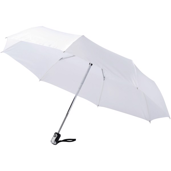 Der Alex 21.5" ist ein praktischer Regenschirm mit allen modernen Annehmlichkeiten. Dank des automatischen Systems lässt sich der Schirm schnell öffnen und schließen. Mit nur einem Klick stört Sie der Regen nicht mehr. Der handliche Regenschirm hat eine Polyesterbespannung, ein Gestell und Rippen aus Metall und einen Kunststoffgriff, der bequem in jeder Hand liegt. Dank seiner Größe passt er im zusammengeklappten Zustand perfekt in eine (Hand-)Tasche. Darüber hinaus bietet er zahlreiche Möglichkeiten für die Anbringung von Logos oder anderen Botschaften und ist in verschiedenen Farben erhältlich.