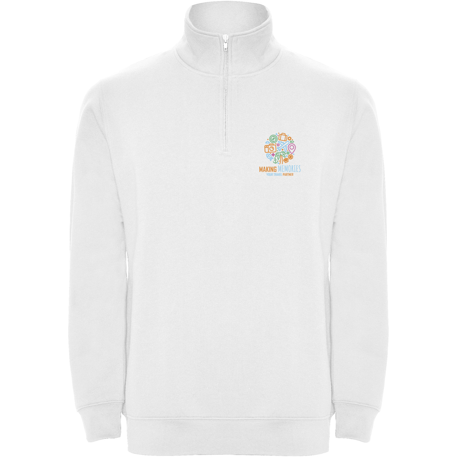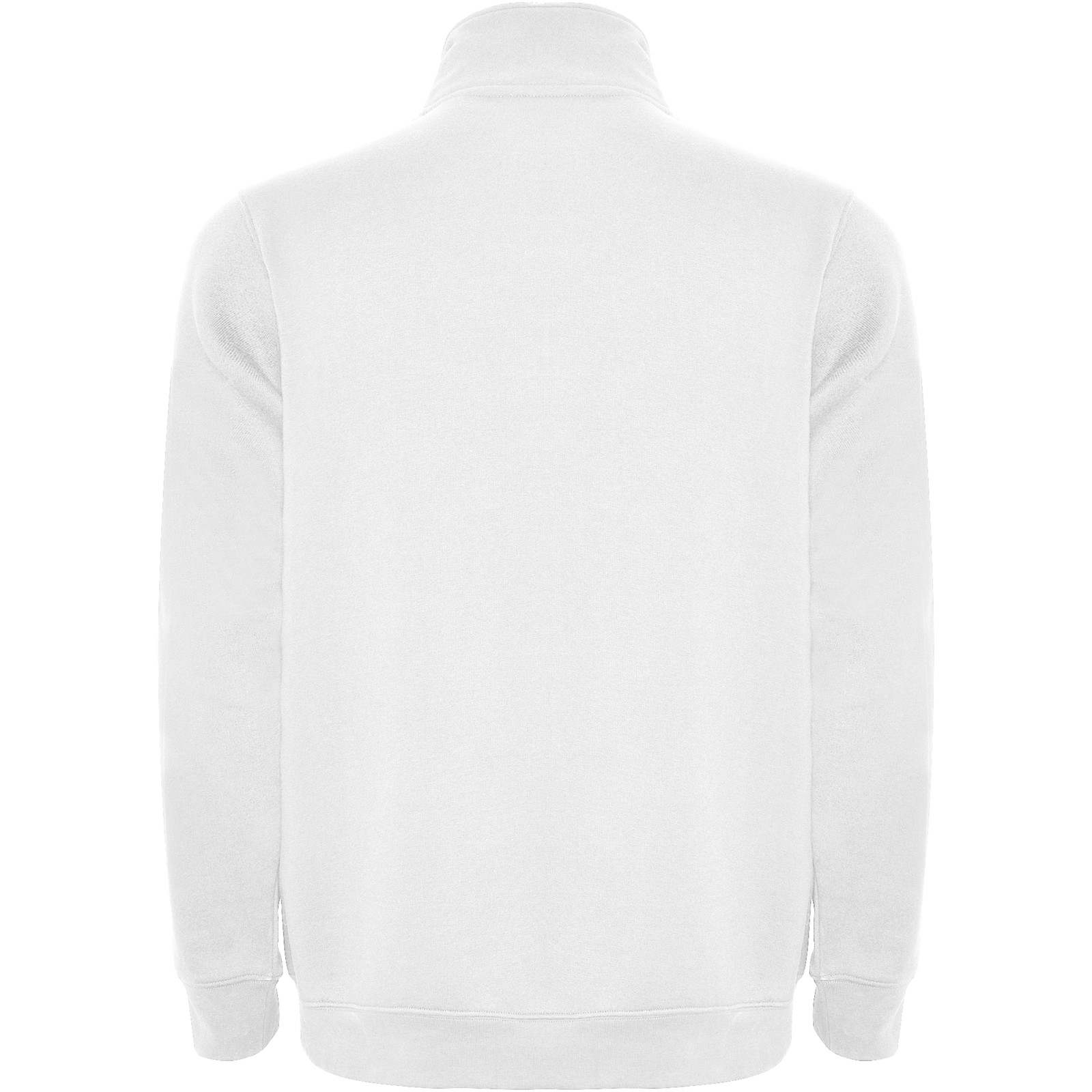 Sweatshirt mit passendem halben Reißverschluss und Polokragen. Passender Innenkragen. Verstärkte, abgedeckte Nähte am Innenkragen. 1×1 Rippbündchen an Ärmeln und Taille. Das Modell ist 185 cm groß und trägt Größe M.
