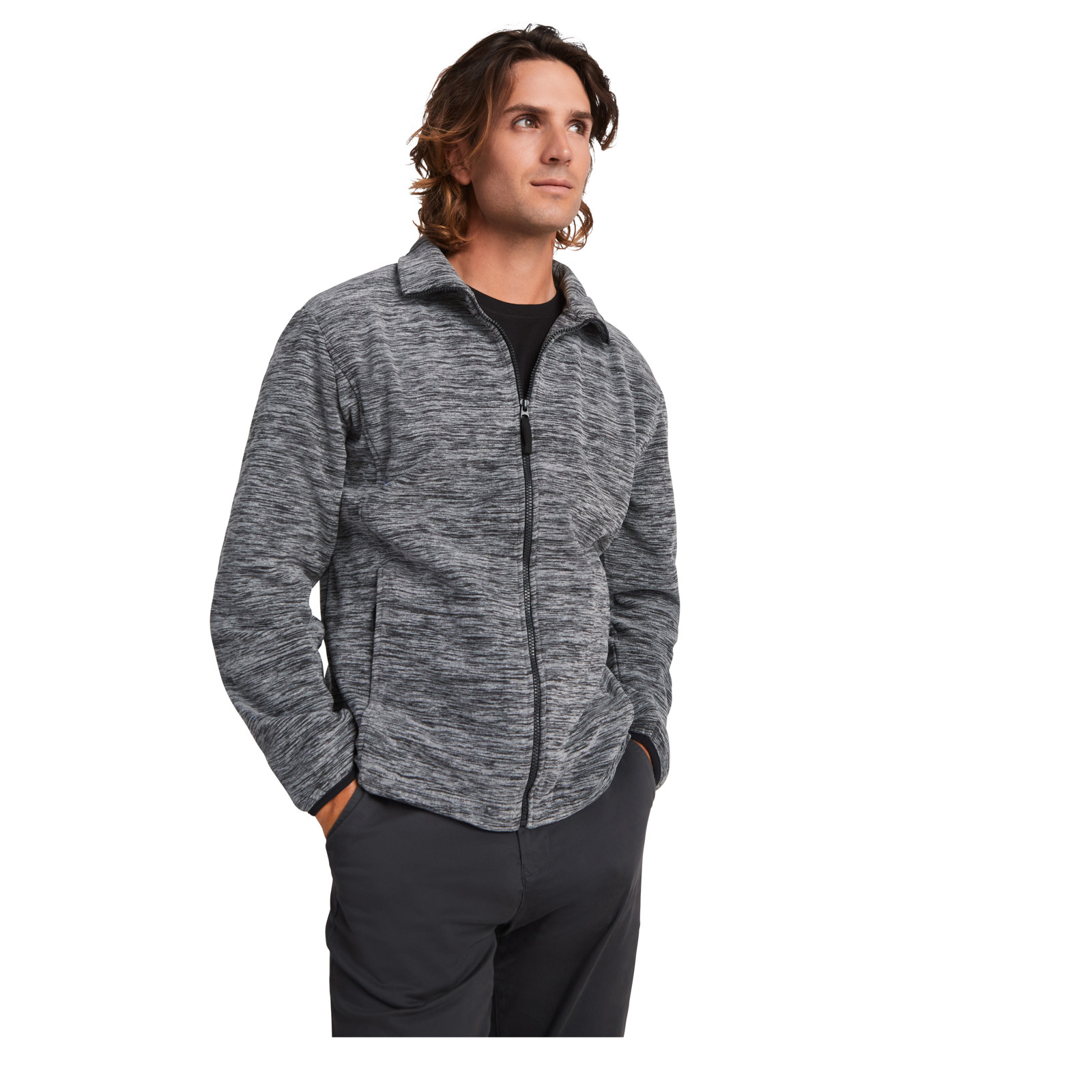 Fleecejacke mit gefüttertem Stehkragen und entsprechend verstärkten und verdeckten Nähten. Eingespritzter Reißverschluss mit passendem Zipper aus Stoff. Seitentaschen. Ärmelbündchen mit Gummizug. Unterer Saum mit seitlichem Reißverschluss. Herausnehmbares Etikett. Das Modell ist 185 cm groß und trägt Größe M.