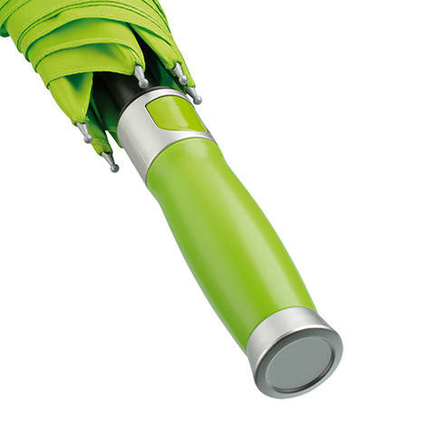 Golfschirm BASIL - OKTAGON® - MIDsize - Automatik - Windproof-System Praktische Automatik zum leichten Öffnen - schwarzes, flexibles Fiberglasgestell mit reversiblen Fiberglasspeichen für eine hohe Belastbarkeit und Flexibilität bei stärkerem Wind - farblich angepasster, kunststoffbeschichteter, stabiler 14mm Stahlstock - farblich angepasst/silberfarbener, gerader, 'soft-touch' Kunststoffgriff mit integrierter Automatik-Auslösetaste - silberfarbene Kunststoffstockkappe mit 'anti-slide' Gummi-Spitze - aluminiumfarbene Metallspeichentips - Polyester-Pongee-Bespannung mit schmutz- und wasserabweisender Hydrophob-Ausrüstung - komfortables Klettverschlussband - Speichenlänge ca. 70cm - Durchmesser ca. 120cm - Länge ca. 93cm - Gewicht ca. 650g