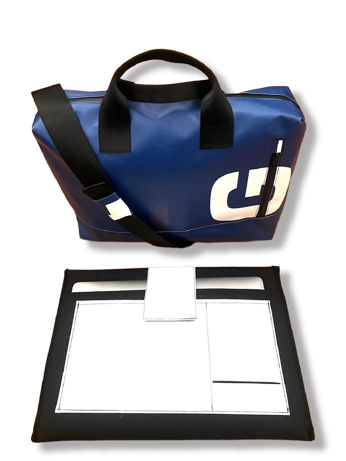 Laptoptasche aus PVC Planenmaterial mit vielen Funktionen, Handyfach, Kartenfach, Penholder, Reißverschlusses, extra Sleeve für den Laptop oder iPad welches herausnehmbar ist, Handgriffe, Schultergurt.