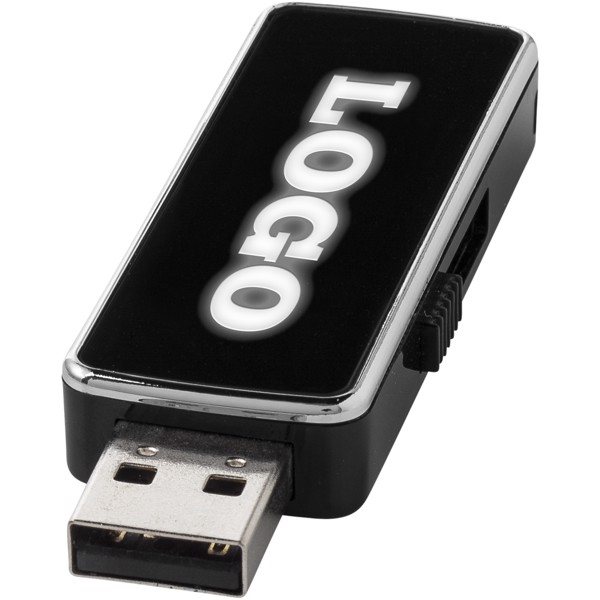 USB-Stick mit leuchtendem Logo. Wenn Sie den USB Stick mit einem Computer verbinden leuchtet das gravierte Logo in entsprechender LED-Farbe. Bitte beachten Sie, dass nur für Deutschland GEMA Gebühren hinzukommen. € 0,24 pro Stück. Aluminium.