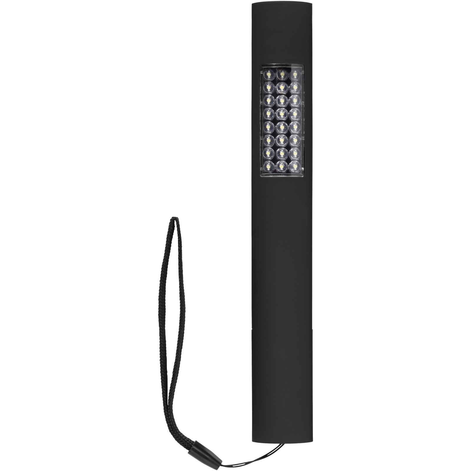 Schlanke Magnettaschenlampe mit drei Modi. Der erste Modus ist eine Taschenlampe mit 4 LEDs, der zweite Modus ist ein Licht mit 24 LEDs und der dritte Modus ist beides gleichzeitig. Magnetische Rückseite für das problemlose Aufbewahren und die Anbringung an Metallflächen bei Gebrauch. Ein/Aus-Schalter. Nylontrageschlaufe. Verpackt in einem STAC Geschenkkarton. Inkl. Batterien. Exklusives Design.