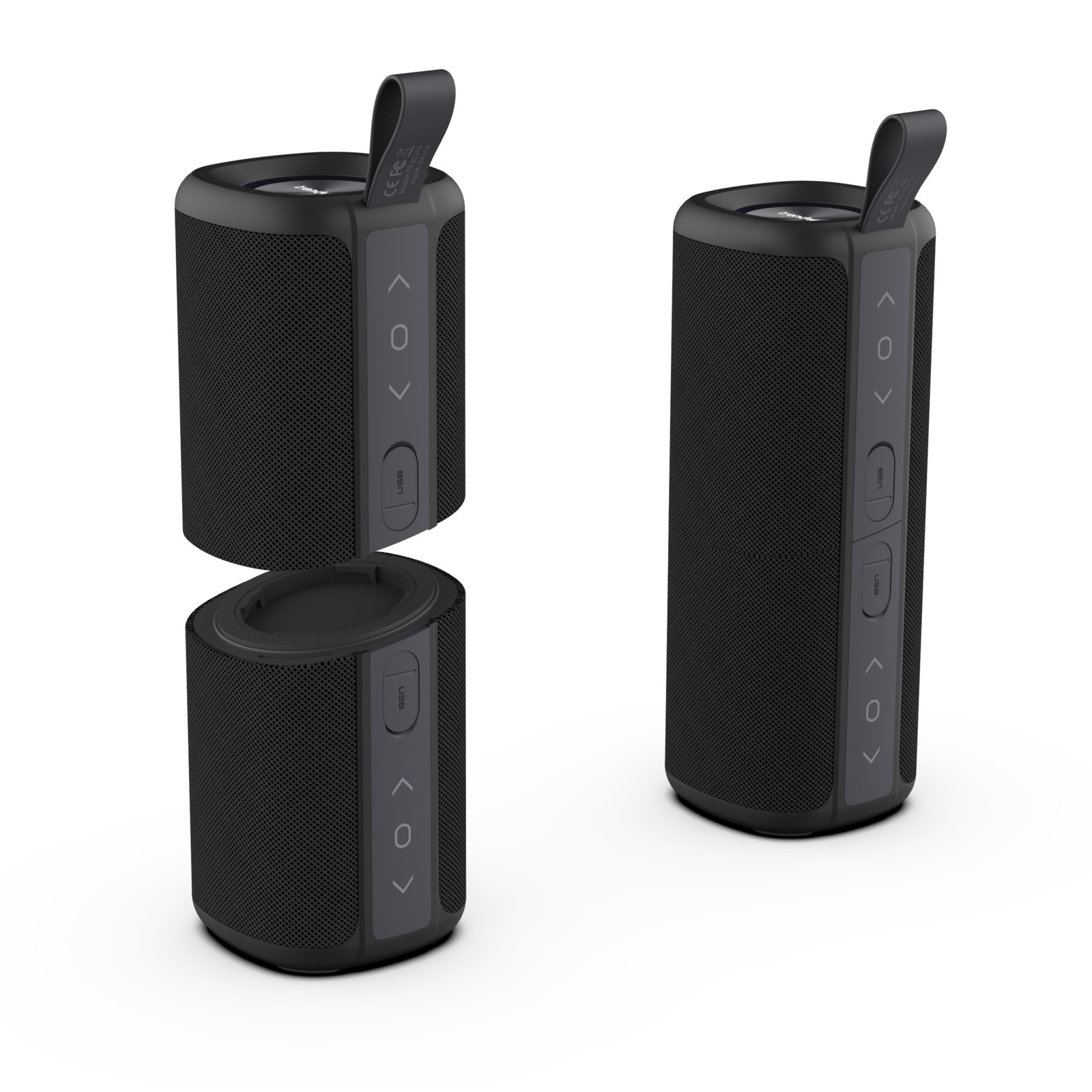 Bluetooth 4.2 IPX7 spritzwassergeschützter 20-W-Lautsprecher, der in zwei unabhängige Lautsprecher zerlegt werden kann. 2 x 1500 mAh-Akkus, die sich in 2-3 Stunden vollständig aufladen, mit einer Wiedergabezeit von 5-7 Stunden. Abmessungen 20,6 x 7,8 x 7,8 cm. Gewicht 860 g. Maximaler Anschlussabstand 10 Meter.