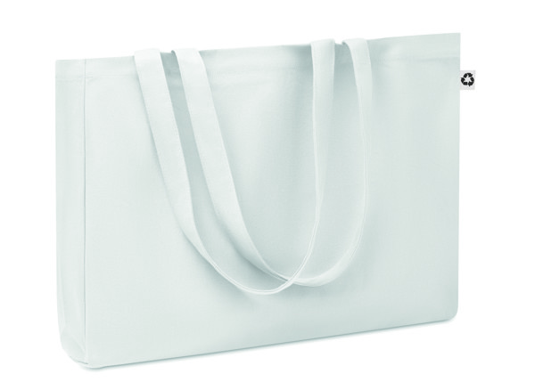 Canvas Einkaufstasche oder Strandtasche aus 50% Baumwolle/50% recycelter Baumwolle mit langen Tragegriffen und Bodenfalte. 280 g/m².